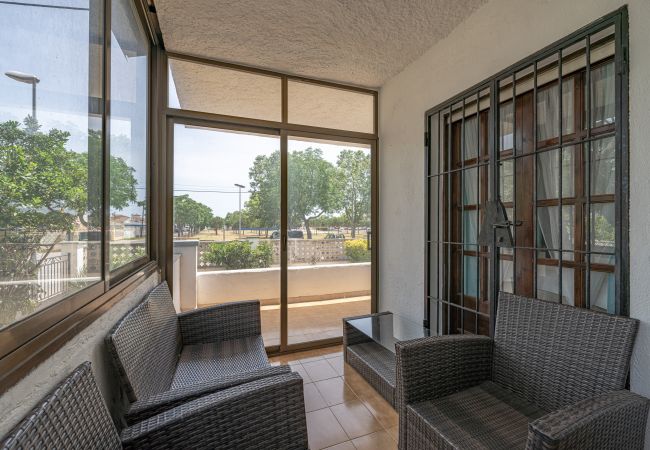 Apartament a Empuriabrava en planta baixa amb 2 habitacions per a 6 persones, amarratge de 2,40m x 6,50m, i aparcament privat