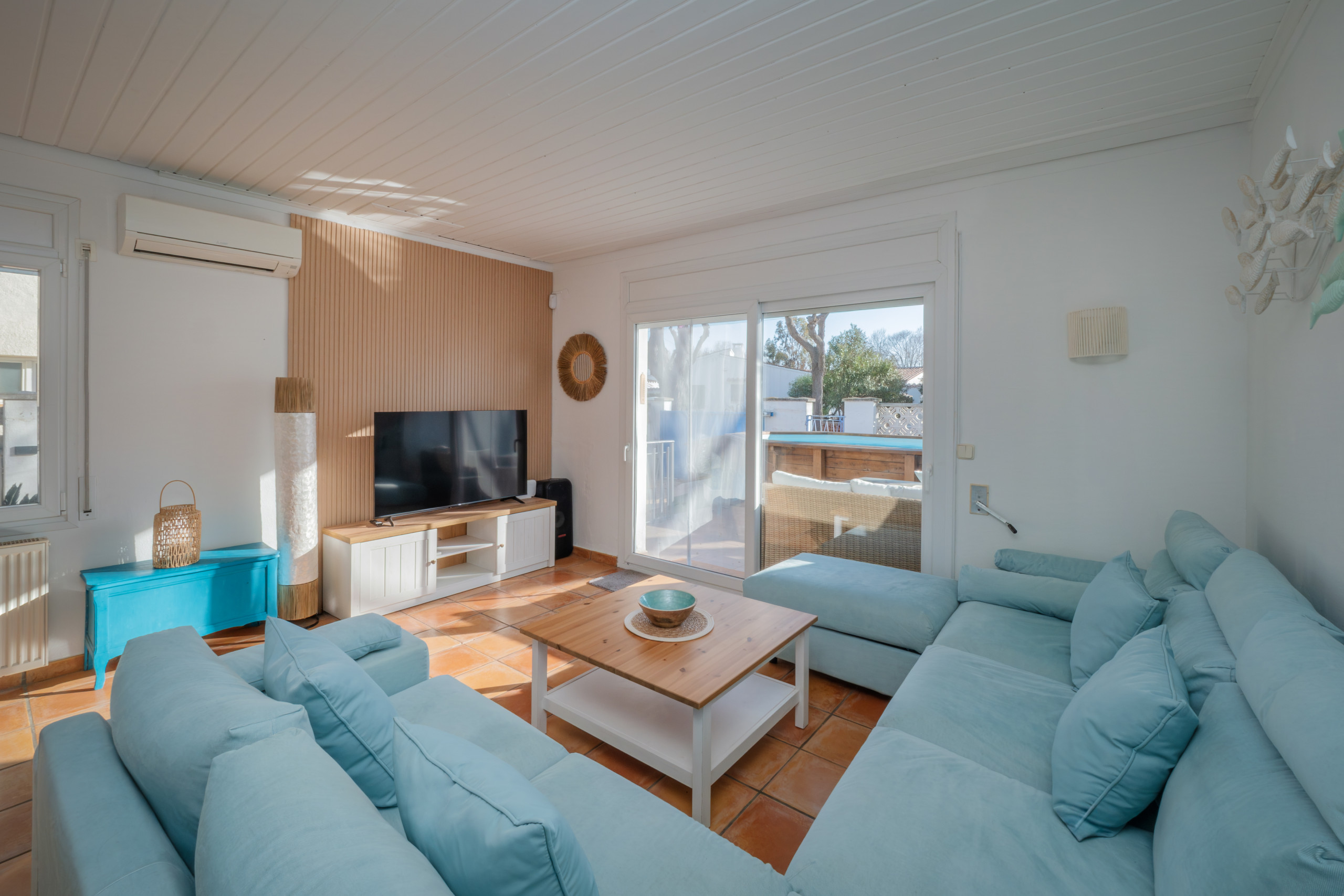 Disposa de jardí, mobles de jardí, rentadora, barbacoa, piscina privada, accés a internet Wi-Fi, sistema d'alarma, calefacció amb bomba de calor, aire condicionat a la sala d'estar i algunes habitacions, piscina privada, aparcament exterior i televisió per satèl·lit (canals espanyols i francesos).