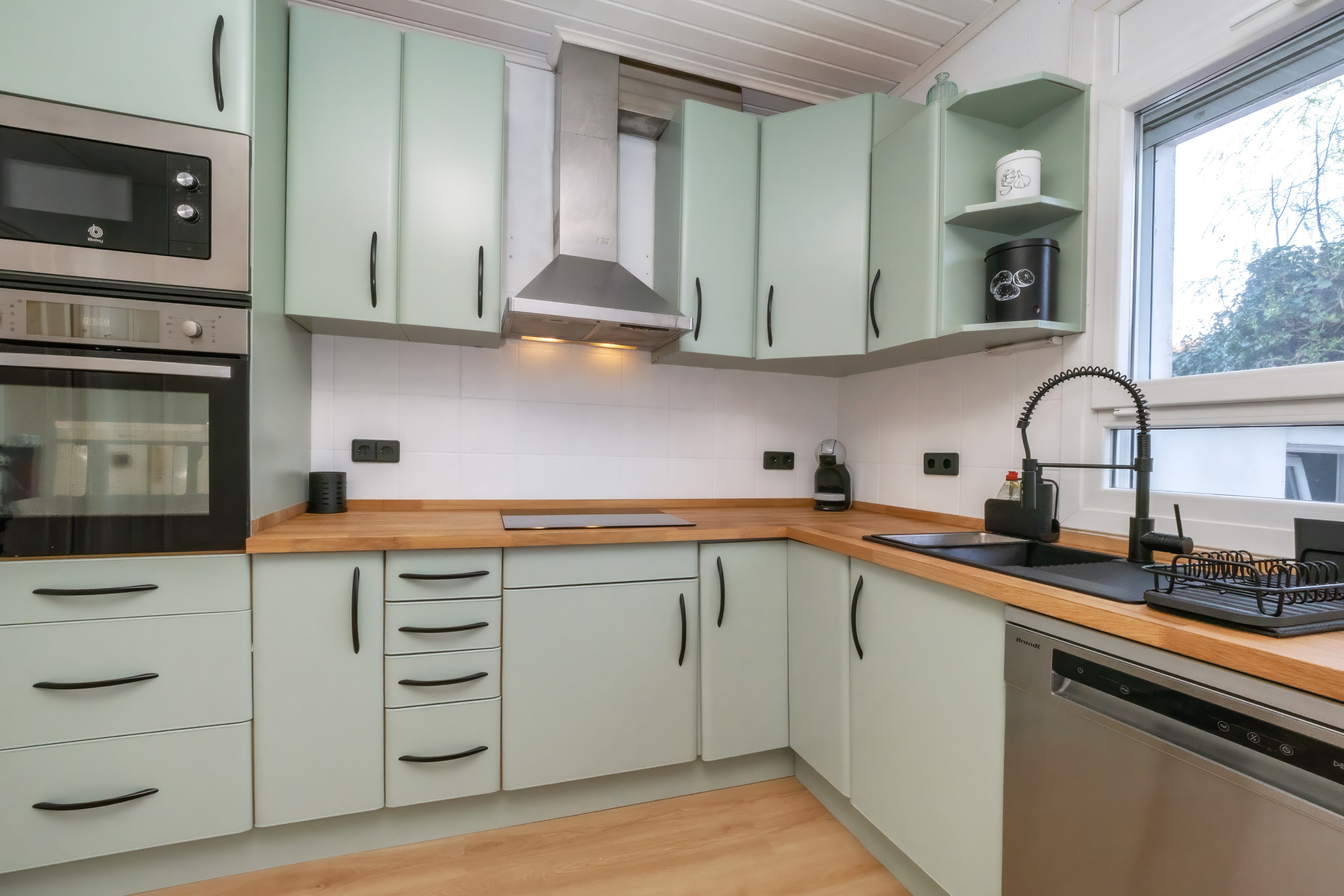 La cuina està equipada amb nevera, microones, forn, congelador, rentaplats, estris de cuina, cafetera, torradora i bullidor d'aigua.